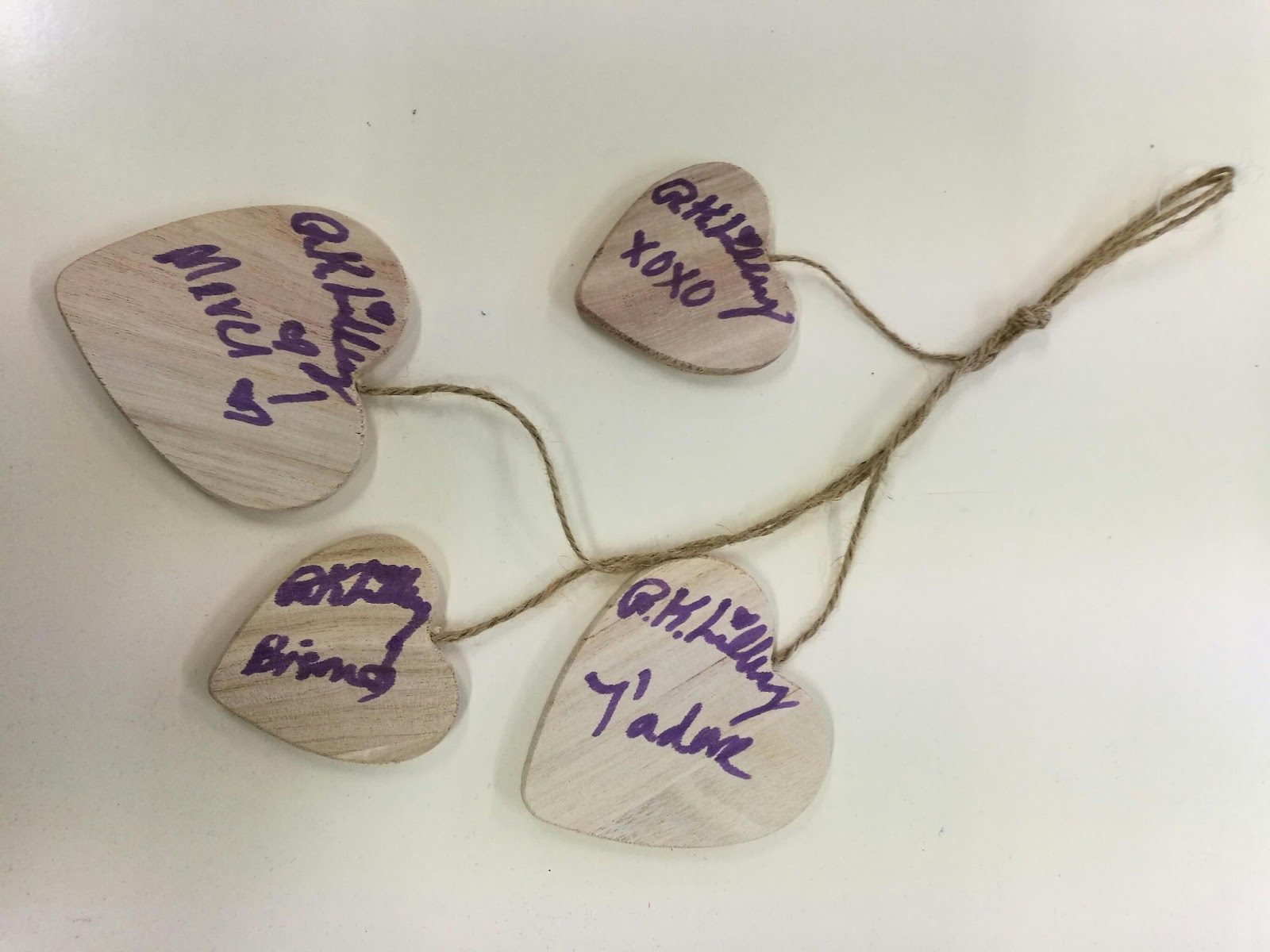 * Lot 2 : Un ensemble de coeurs en bois dédicacé par RK Lilley